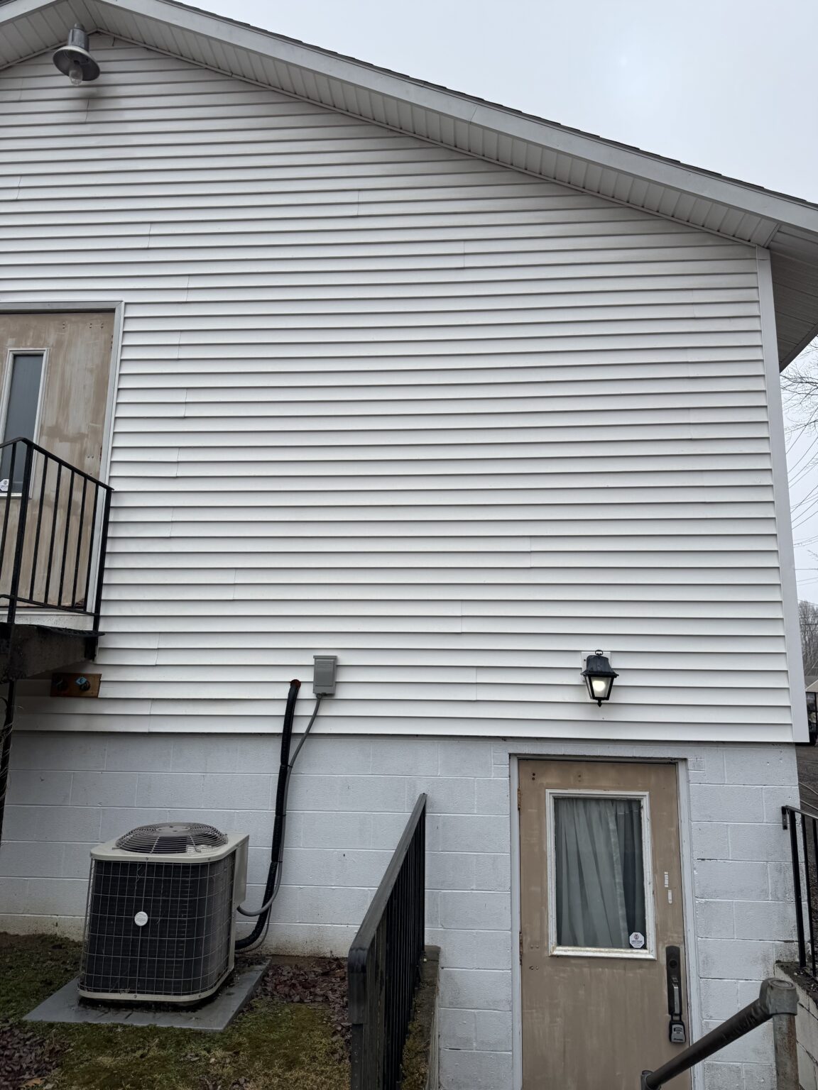 This siding cleaning project at a bridal shop in Geneva, Ohio presented a unique challenge due to prolonged exposure to nearby road construction. Over time, fine dust, debris, and contaminants became compacted and bonded to the vinyl siding, creating a heavily soiled surface that could not be effectively treated with a standard pressure washing approach.